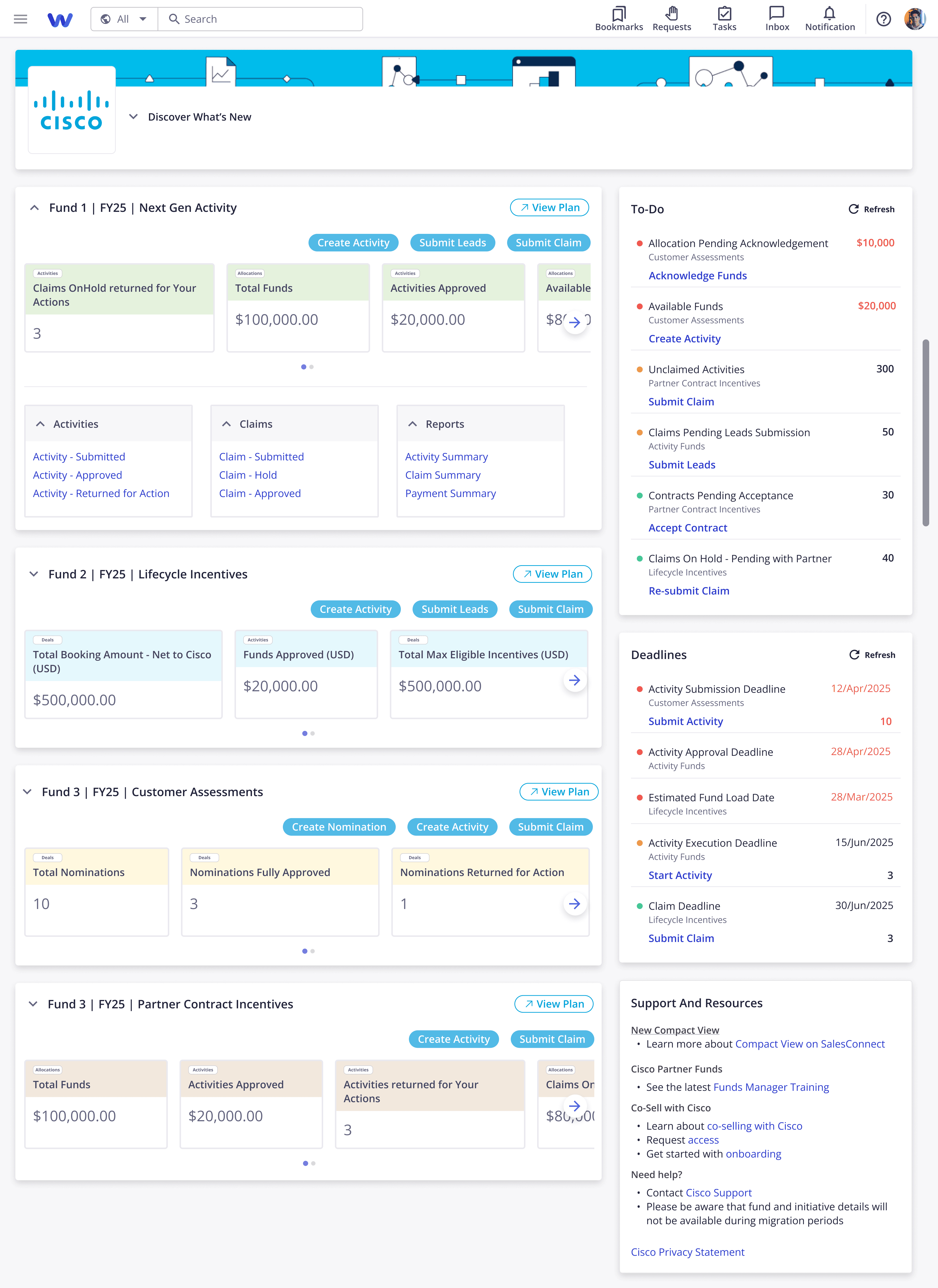 Using the same modular widget approach, I helped redesign Cisco’s landing page to deliver a 360° view of allocations, deadlines, and approvals - all in one place.