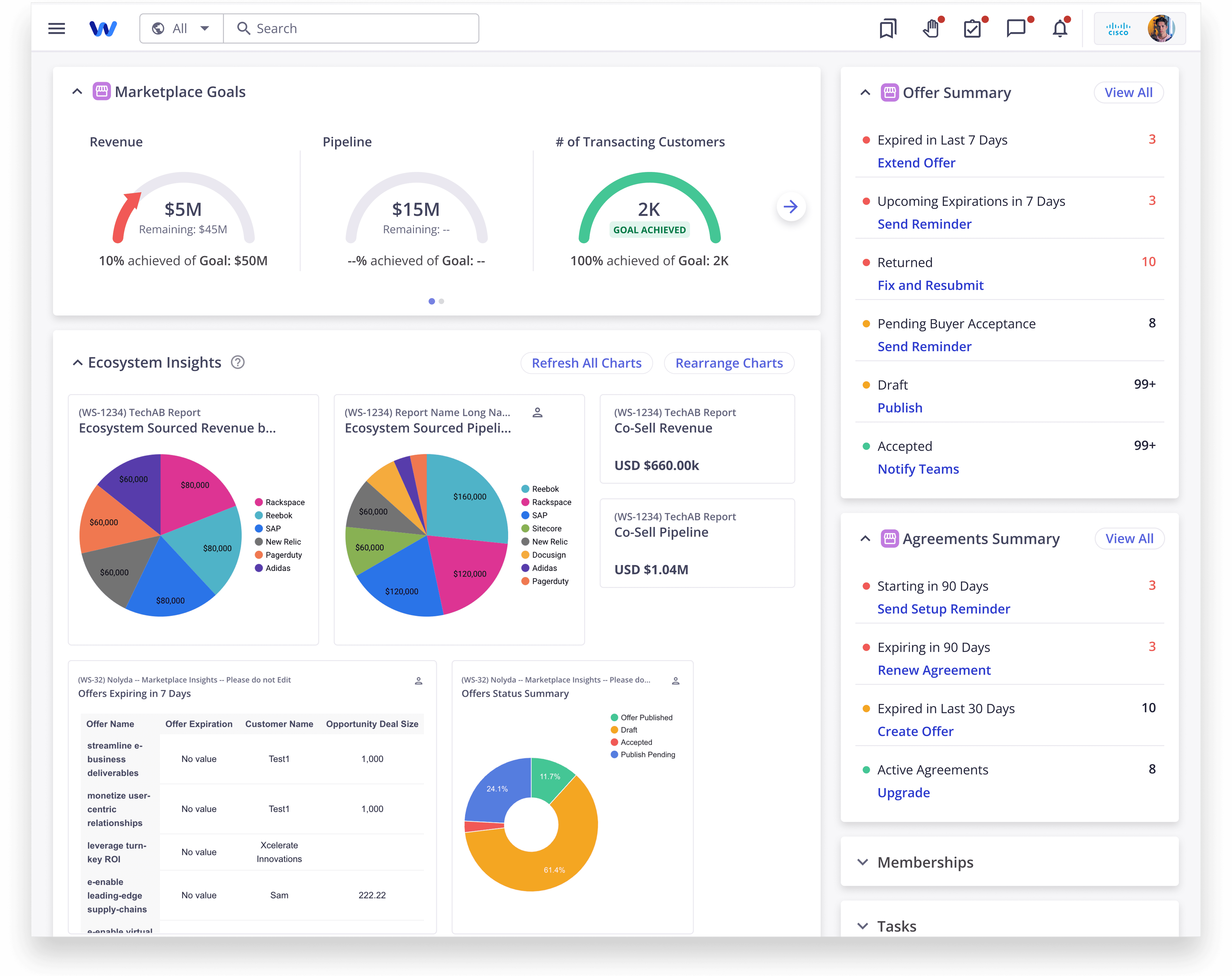 The heartbeat of the Marketplace - showing goal progress, offer statuses, and key targets at a glance.